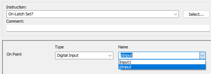 It is a simple digital input form SNAP-IDC-32. IT looks like the IsOnLatchSet() parameter is a digital input, pointer isnt listed in the dropdown.