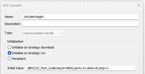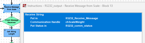 I have changed brands of a weigh scale with RS-232 output that is used in a PAC Control program and I need to adjust some parts of the program to adjust to the new string of characters. I can parse the string okay using my code, but I notice that the string length changes between 18 and 19 characters. My settings are: baud=9600,parity=n,data=8,stop=1