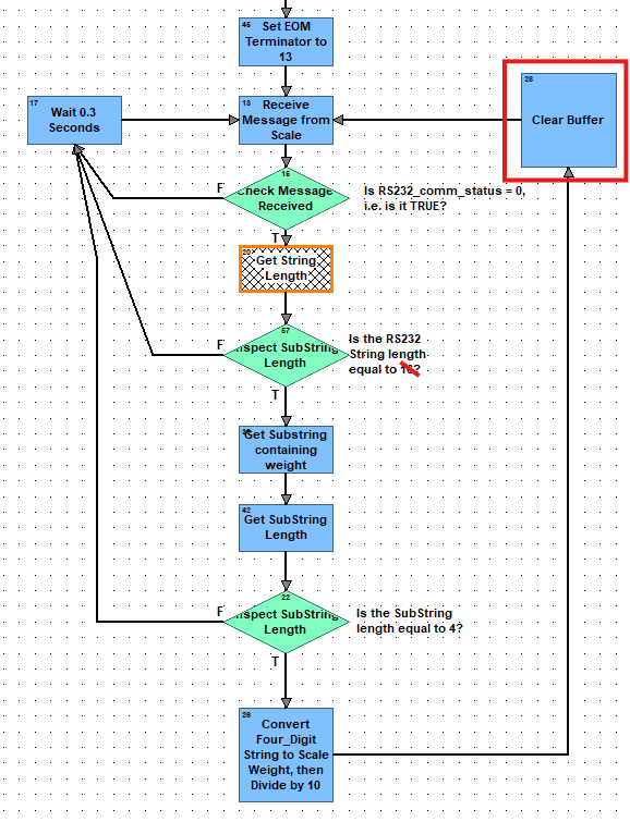 Not being that familiar with this, but should I include the block “Set EOM Terminator to 13” in the loop? I thought that step was needed only at the beginning and once done, I could just receive the RS-232 data.