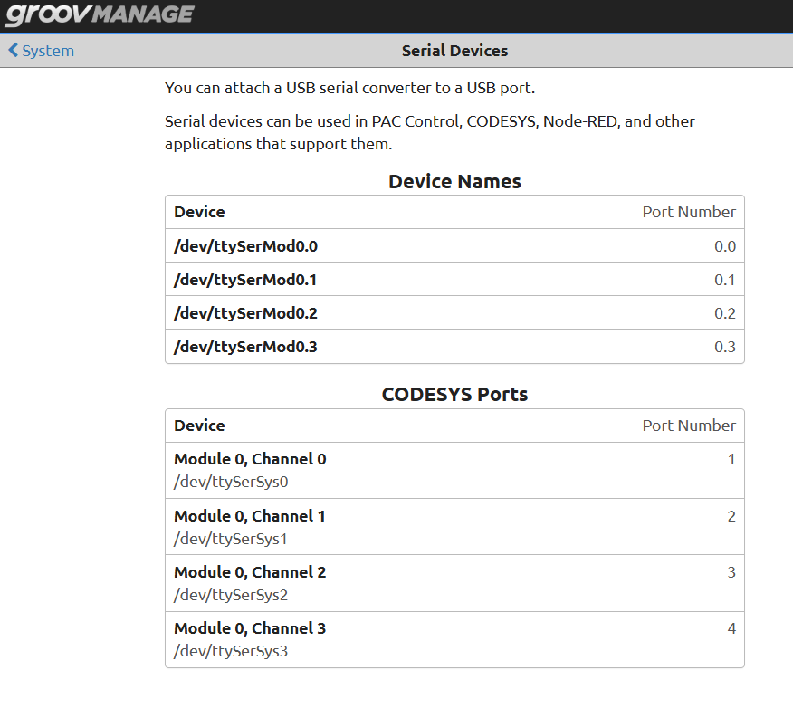 Similarly the addresses for serial device can be found in groov Manage.